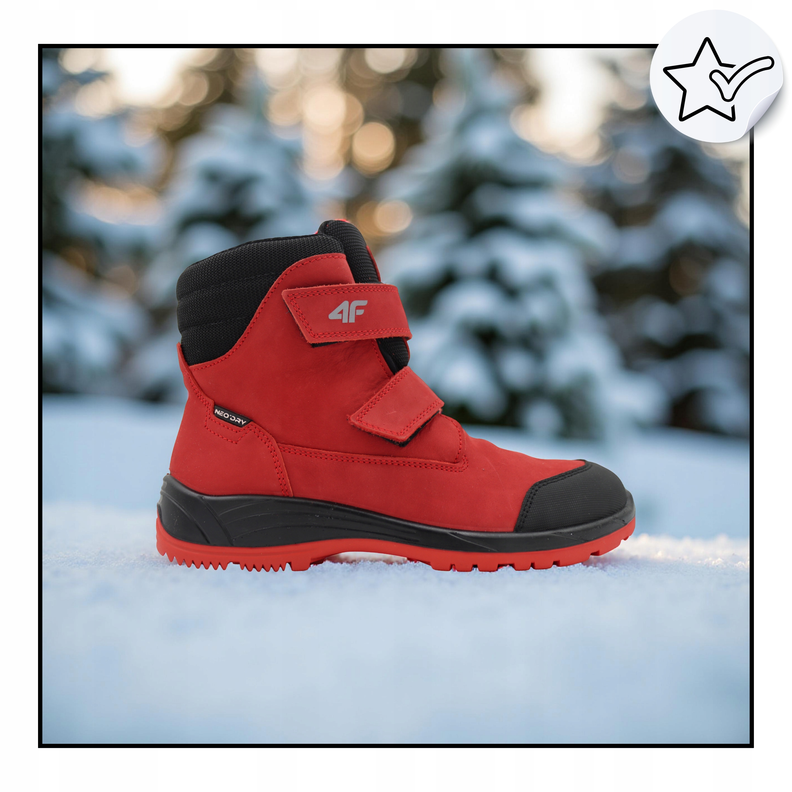 Model dziecięcy marki 4F zaprojektowany z myślą o aktywnym użytkowaniu na świeżym powietrzu — zarówno w leśnych ścieżkach, jak i miejskich warunkach. Wykonane z wysokiej jakości nubukowej skóry (materiał cholewki) z membraną NeoDry, która zapewnia ochronę przed wilgocią i pozwala stopie „oddychać”. Podeszwa gumowa z dobrym bieżnikiem gwarantuje przyczepność na nierównym podłożu. Zapięcie na rzepy (lub rzep), co ułatwia samodzielne zakładanie przez dziecko. Kolorystyka dominująca: czerwono-czarna (oznaczenie 62S).