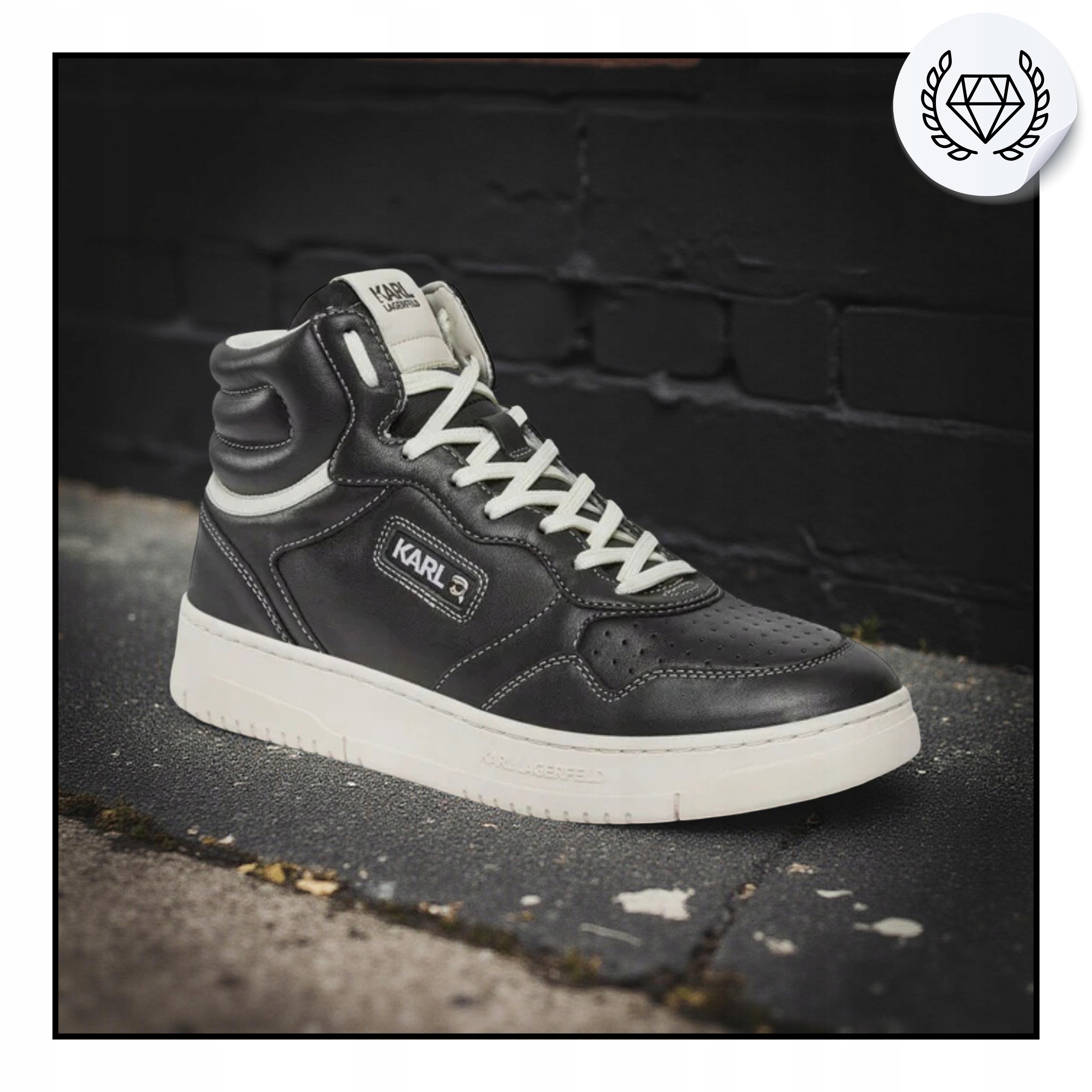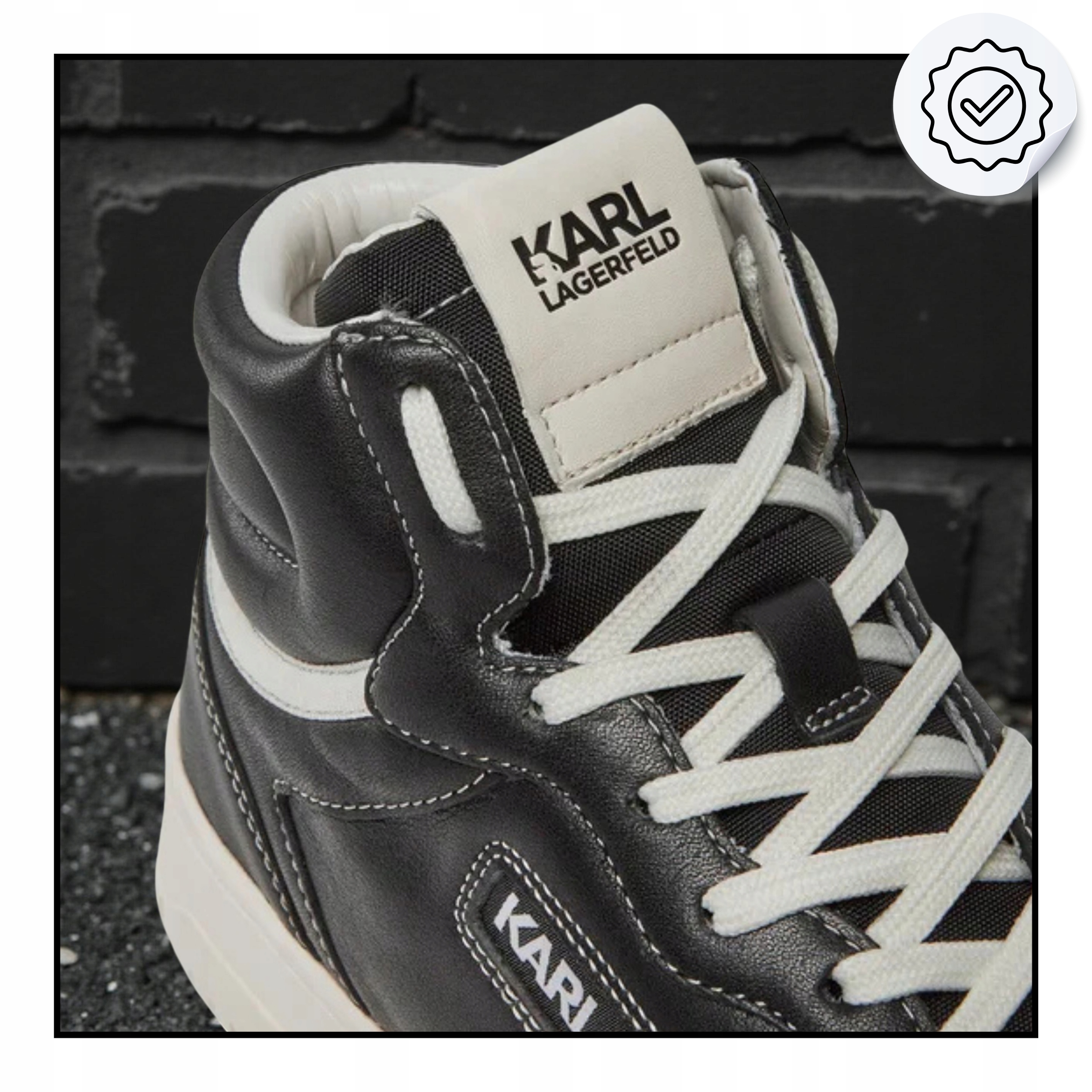 - Detale z logo KARL LAGERFELD – charakterystyczne i stylowe wykończenia.