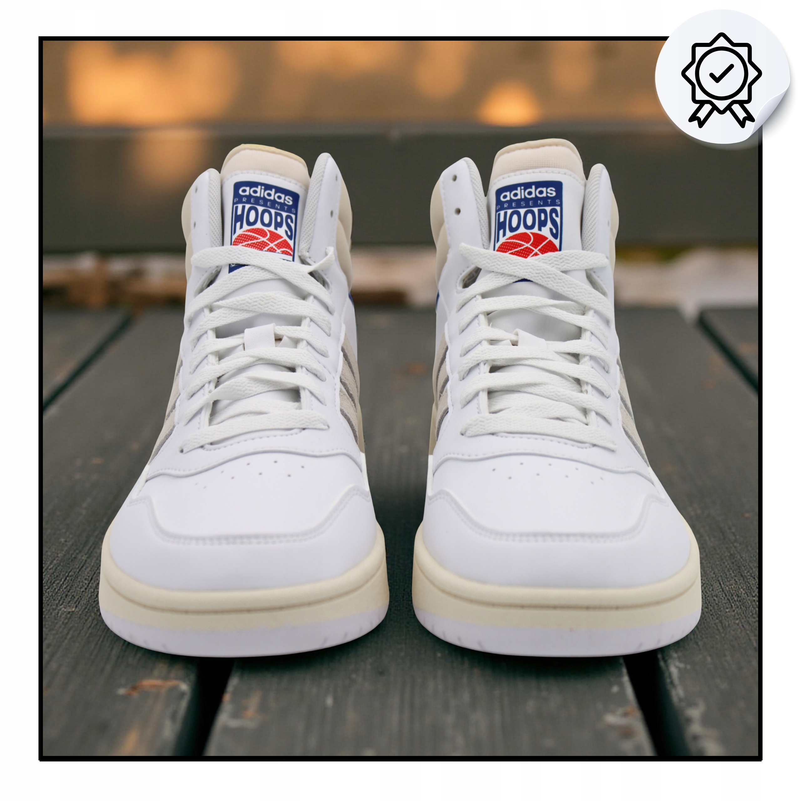 Buty Sneakersy Wysokie Białe Skóra Skórzane Wygodne ADIDAS HOOPS